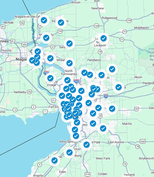 We service approximately 20 miles from our Niagara Falls location.