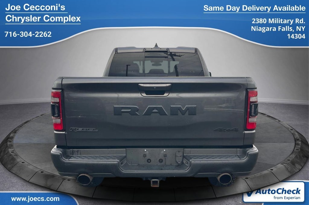 ENGINE: 5.7L V8 HEMI MDS VVT, TRANSMISSION: 8-SPEED AUTOMATIC (8HP75), QUICK ORDER PACKAGE 25W REBEL, LOWER TWO TONE PAINT, GRANITE CRYSTAL METALLIC CLEARCOAT, DIAMOND BLACK CRYSTAL PEARLCOAT, RED/BLACK, CLOTH/VINYL LOW BACK BUCKET SEATS, GVWR: 7,100 LBS, MANUFACTURER'S STATEMENT OF ORIGIN